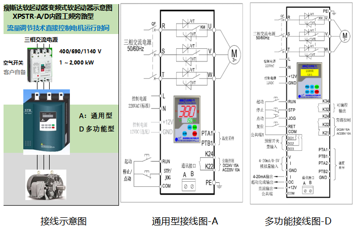 STR 系列电动机软起动器能有效限制异步电动机起动时的起动电流,可广泛应用于风机、水泵、输送类及压缩机等负载,是传统的星/三角转换、自耦降压、磁控降压等降压起动设备的理想换代产品。